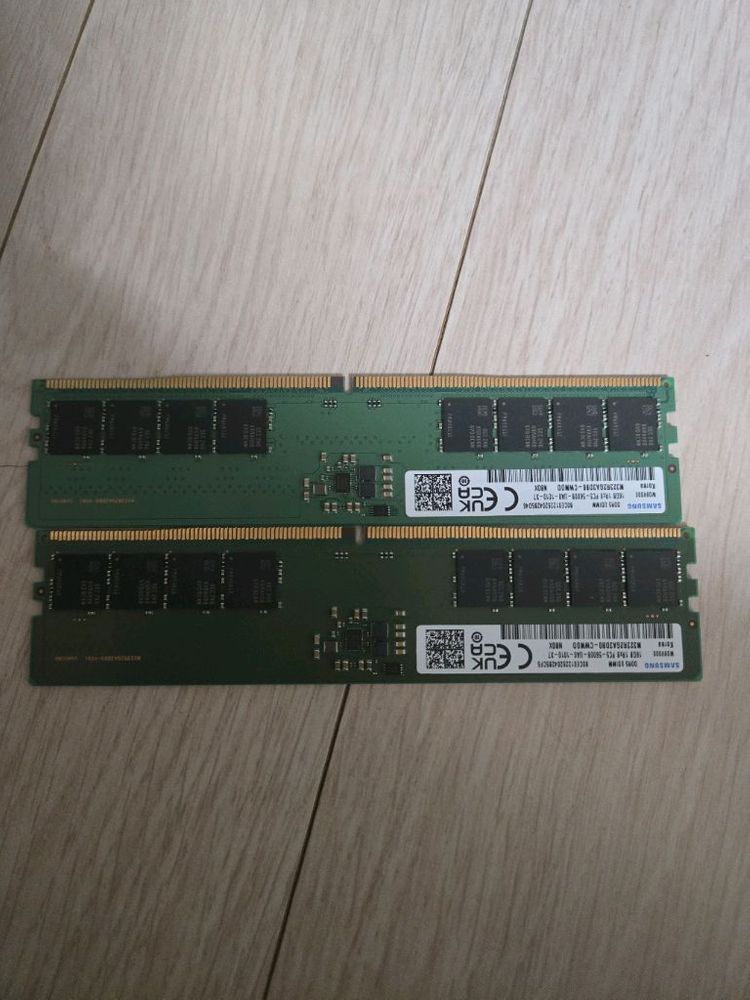 DDR5 16GB 메모리 2개입니다. 사용감은 있지만 정상 작동하는 상태예요. 컴퓨터 업그레이드나 교체용으로 좋을 것 같아요.