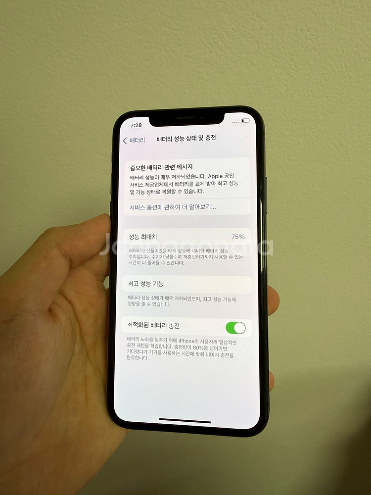 256기가 배터리75 깔끔합니다 큰 이상 없고 마지막사진 정말 작은점 하나 있습니다 점 더 안커지고 그대로입니다 앞뒤 카메라 에어드랍 페이스아이디 유심인식 등 모든 기능 정상입니다