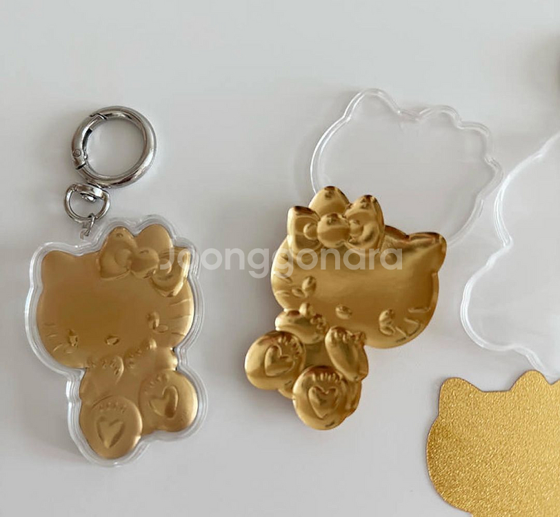 귀여운 순금999 20mg 골드 키링 입니다! 투명 아크릴 소재에 골드 컬러로 고급스럽고 예뻐요. 새거이고 키링 활용하기 좋을 것 같아요.