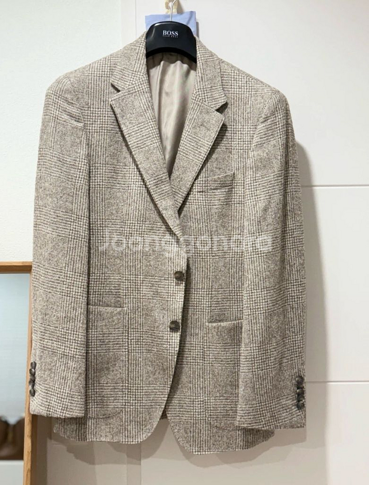 휴고 보스 테일러드 자켓입니다. 은은한 밝은 베이지 브라운 체크 패턴이 돋보이고 정말 고급스럽습니다. - 구매처 : 미국 Nordstrom 백화점 구매 (정품 아닐시 2배 보상) - 구매가격 : $1300 정도 택스포함 , 한화 약 180만원 정도 - 구매시기 : 2023 초 - 사용시기 : 총 착용 횟수 5회 미만 (상태최상) - 색상: 라이트 브라운/베이지 - 사이즈: 46 (DE/FR/IT), 36R (US/UK/MX) - 재질: 이탈리아 Agnona 원단 (고급원단인거 아시죠?) - 제조국: 터키 - 대략 사이즈 : 총장 80 cm 정도 , 어깨 끝에서 끝 (재봉기준) 43-45 정도 - 약간 슬림핏 - 구매시 단추 까지 다 있습니다