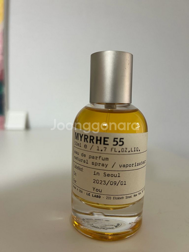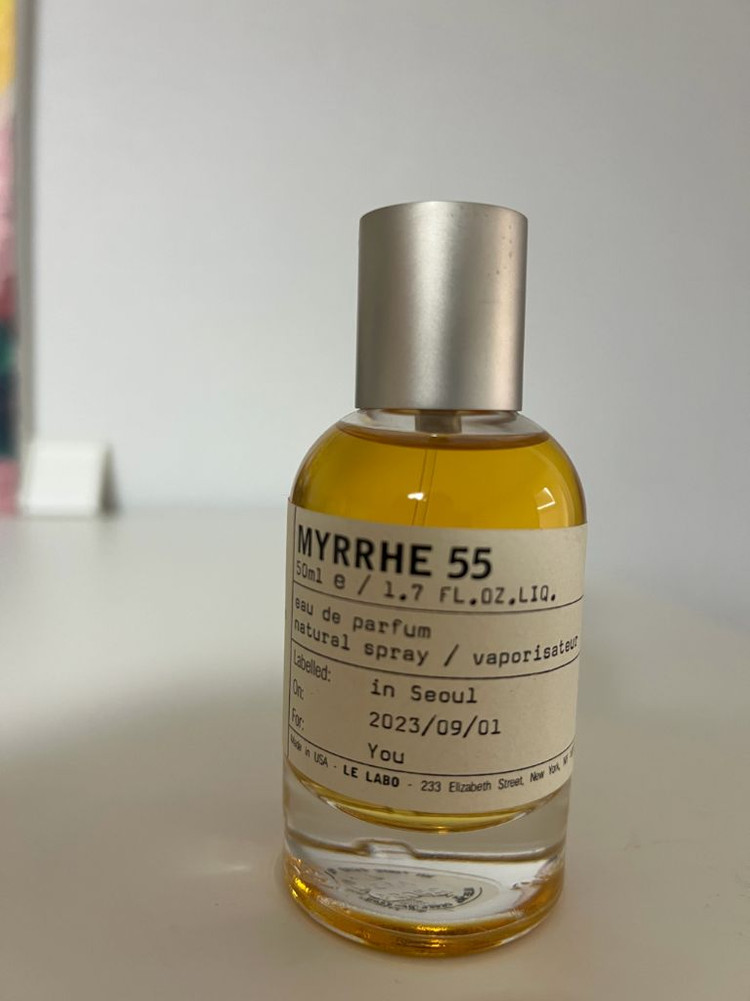 르라보 MYRRHE 55 향수 50ml입니다 2023년 9월 1일에 라벨링된 제품입니다 르라보 시티 익스클루시브 라인으로 알고 있습니다 공식매장에서 구매했고 향 변향 전혀 없습니다