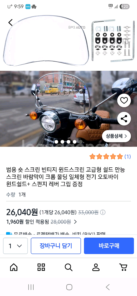 전기 오토바이에 장착하는 윈드실드입니다. 빈티지한 디자인으로 오토바이 외관을 더욱 멋스럽게 만들어줍니다. 찬바람을 막아주어 주행 시 피로감을 덜어줍니다. 문의 없으시면 바로 안전결제해주시면 됩니다! 크롬 몰딩 있어서 고급 스러워요 장착만하고 탈거 택비 포함 12.000 문자나 전화 부탁