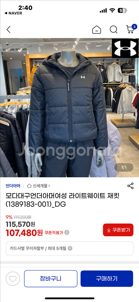 언더아머 여성용 라이트웨이트 패딩 재킷입니다 - 사이즈는 M입니다(150-160후반까지 잘맞음) - 색상은 블랙입니다 택 달린 새 상품입니다. 가볍고 보온성이 뛰어나서 간절기에 입기 좋습니다 정가 12만원
