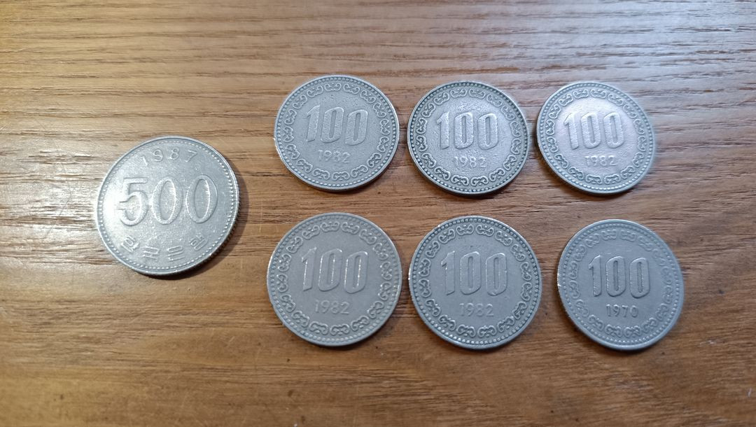 희귀 동전 500원/1987/1개, 100원/1982/5개, 100원/1970/1개 [일괄 택포 3만]