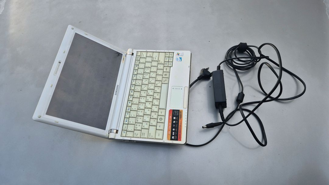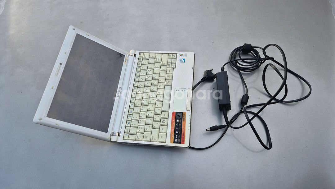 노트북이에요. 화면은 켜지지만 부품용으로 판매합니다. 어댑터도 함께 드려요. 윈도우 xp 실행 됩니다. 팬소음이 회전할때 좀 크게 들립니다 바닥에 본체 고정볼트 여러개 없습니다. 램1기가 하드 100기가 밧데리는 완전충전하면 1시간30분이상 사용가능 나옵니다