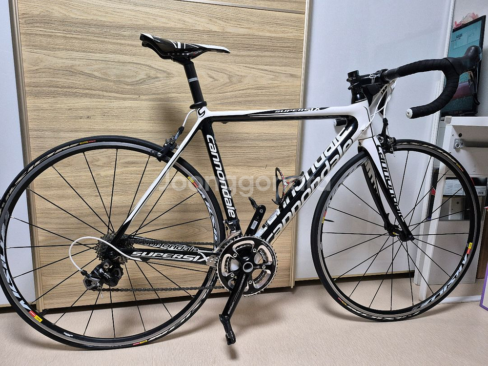 캐논데일 SuperSix 풀카본 로드 자전거입니다 올라운드 성향의 로드 바이크 입니다 프레임은 풀카본 자전거입니다 주행감이 부드럽고 반응성이 뛰어납니다 흰색과 검정색 프레임이 멋스러워요 전반적으로 사용감은 있지만, 상태는 SS 급 입니다 2016년식 싸이즈 52센티 - Polaris Carbon 안장 - 캐논데일 카본싯포스트 - 시마노 105 구동계 18단 - 마빅 AKSIUM 휠 - 시마노 105 브레이크 - 시마노 105 클릭페달 - 바테잎 상태 좋아요 - 새차처럼 크렉이나 먹 없이 깨끗합니다 타보시고 결정하세요 가까운곳은 가져다 드릴게요 타보시고 결정하세요