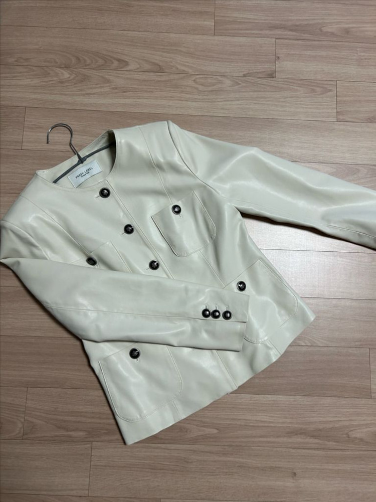 블랙 버튼 디테일이 포인트이고, 깔끔한 상태로 보관되어 있습니다. 클래식한 디자인으로 다양하게 코디하기 좋아요.