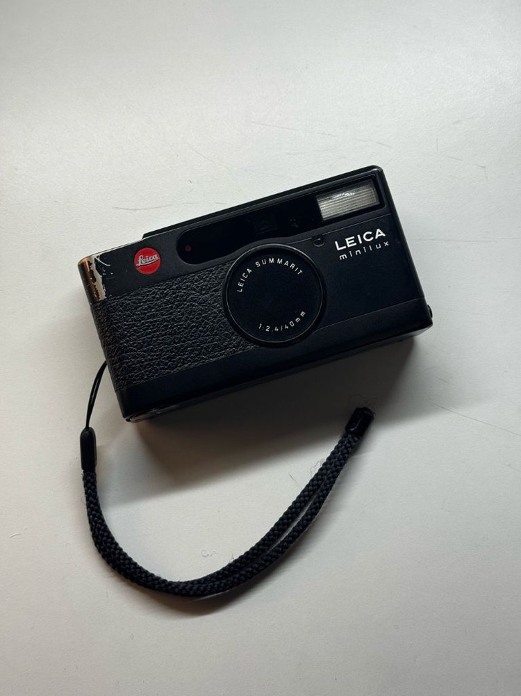 라이카의 클래식한 미니룩스 필름카메라입니다. 컴팩트한 사이즈로 휴대성이 좋고, 빈티지 감성 가득한 명품 카메라예요. 사용감은 있지만 작동 상태 양호합니다.