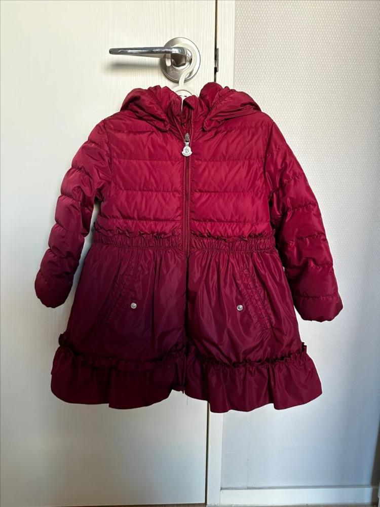 몽클레어 여아 패딩입니다 색상은 버건디 색상이고, 사이즈는 2a 92cm입니다 나이는 유럽(미국)이라서 저는 한국나이 5세까지 입혔어요 (현재 22년생) 상태는 사진과 같이 너무너무 좋고 너무너무 이뻐요 구매처는 유럽입니다 (비엔나 판도로프 아울렛)