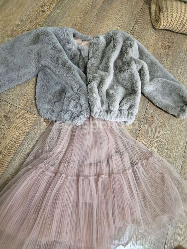 고급스러운 퍼 자켓이에요. 그레이 컬러의 퍼와 핑크 플리츠 스커트가 조합된 세트로 상태 양호합니다. 따뜻하고 스타일리시한 겨울 아우터로 추천해요! 와이드팬츠.원피스.치마 와 코디가능해요. 앞단추 있어서 자켓으로도 활용가능하고 목폴라에 코디하면 이뻐요. 파티룩에 추천 7세(120사이즈)