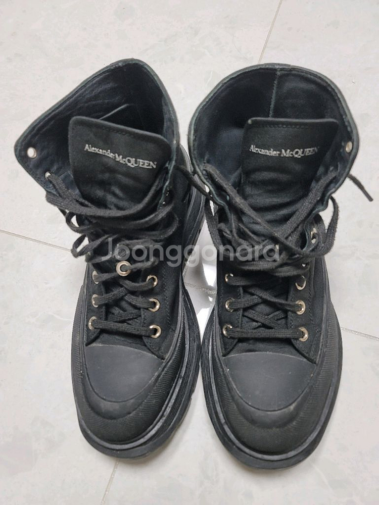 알렉산더맥퀸 트레드슬릭 하이탑 스니커즈 45표기 290사이즈 상태굿 남성 290 사이즈 빅이라 저렴히 팝니다 키높히깔창 붙여서 사용하고 안쪽뒷굽이 찢어졌습니다 신는덴 큰지장없고 깔창에도 본드자국남아서 위에 다른깔창하나 깔고신으셔야할듯합니다