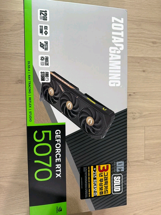 ZOTAC RTX 5070 12GB 그래픽 카드 팝니다 실사용은 거의 없었고 25년 8월에 구매했습니다 3년 보증 +2년 추가 보증 등록되어있습니다 애완동물 X 흡연 X