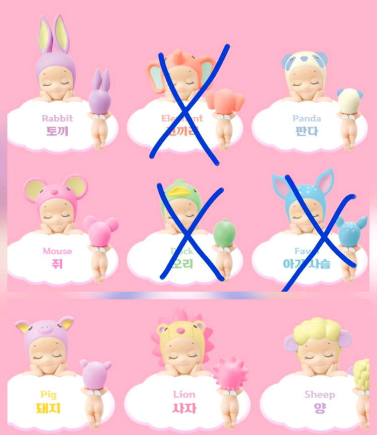 소니엔젤 히퍼 드리밍/하베스트/애니멀/루킹백 낱개 미개봉 팝니다[가격상이] 겉비닐 개봉 속비닐 미개봉입니다 미개봉이라 공뎀 확인 불가 정품만 취급하니 가품 문의 X (물건 인증 해달라는 분들 계시는데, 못 믿을거면 구매 안하시면 됩니다. 사진, 동영상 인증 안합니다 ^^) 2개 구매시 500원 할인해드립니다. 택배 빨리 보내달라하지마세요 바쁜 사람이라 그럴거면 주문 안받습니다. 늦어도 주문 다음날 밤까진 보내드려요. 꼭 사실 분만 문의 부탁드립니다🙏 [파는 것들이 많아, 글 내용 읽지도 않고 문의하는 분들, 구매 결정하지 않고 찔러보는 분들 다 차단합니다^^] 히퍼 드리밍 토끼 23000 판다 완료 쥐 17500 돼지 14500 사자 14500 양 완료 히퍼 하베스트 당근 12500 배 13500 체리 25000 버섯 15000 히퍼 애니멀 사슴 13000 롭이어 완료 코끼리 13000 쥐 17000 히퍼 루킹백 악어 12500 코알라 12500 햄스터 17000 오리 17500 반택 +2500 일반택배 3700(서을 경기 인천 외 타권역 +4000) 교환/환불 불가 분실 파손 책임 x