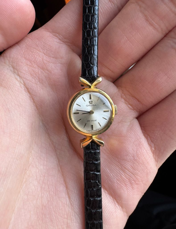 VINTAGE LADIES OMEGA DEVILLE WRIST WATCH CAL. 484 KEEPING TIME 17 JEWEL 오메가 워치 입니다 가죽줄은 최고급 도마뱀 천연가죽이구요 해외경매가나 사이트 찾아보면 102만원($700)에 거래되는 비싸고 희귀한 제품입니다 귀족이 사용하던 484수동무브먼트이구요(가치 아주 높음) 20도금으로 도금 기법중에선 제일 고급럽고 두꺼운 금도금입니다 8번째 사진 보시면 유리 사이드 쪽에 속깨짐이 있습니다 육안으론 잘 안보이지만 찝찝하신분들은 시계방으로 가시면 어디든 1~3만원대로 바꾸실수있습니다 여성시계이구요 평소에 클래식한 빈티지 시계 좋아하시거나 탱크 루이미니 같은 느낌 좋아하신다면 후회없는선택일것같습니다 빨리 쟁겨 가세요 아주 싸게 올립니다!!