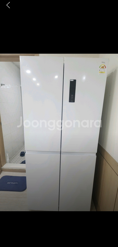 TCL 4도어 냉장고 428L 화이트 모델입니다. 냉장고 구매했는데 결혼으로 인한 이사로 혼수구매하여 판매하게 되었습니다. 스크레치는 엽서나 스티커 또는 마그넷 붙여놓으면 안보여요. 25년 9월5일 구매했고 무상AS 2년됩니다. - 428L 용량 - 색상은 화이트입니다 - 크기는 833x678x1850mm입니다 2중 인버터 컴프레서가 적용되어 효율적인 에너지 관리가 가능하고, 자동 살균 기술로 냉장고 내부를 깨끗하게 유지할 수 있습니다 또한, 디스플레이 제어판으로 간편하게 온도를 조절할 수 있습니다 스크래치가 조금 있습니다(사진 참고) 이동은 용달 소개시켜드릴수 있고, 남자 1명 도움가능합니다.