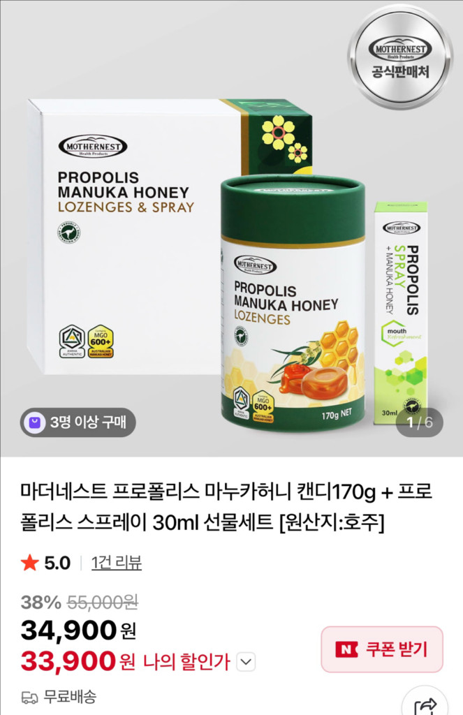 (새제품)마더네스트 마누카 프로폴리스 캔디 스프레이 세트 팝니다 유통기한 27년12월까지로 넉넉합니다 새상품이라 선물도가능해요~ 구매후 환불이어려우니 양해부탁드립니다~ 우편거래는 4천원 추가됩니다~