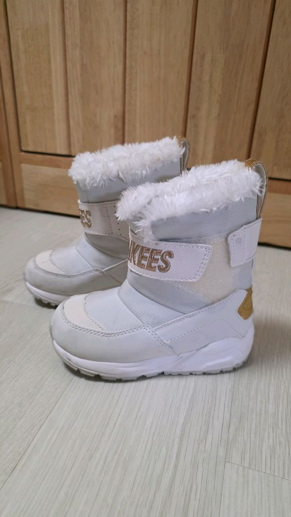 여아 새상품 사서 몇번 안신은 부츠입니니다. 160 사이즈로 사이즈 조언은 어렵습니다 깨끗하게 잘 신었고, 생활방수 제품으로 세탁은 따로 하지 않았어요. 화이트색상이라 이염은 눈에 띄지만 표면은 닦아내시면 될 듯 해요. 화이트 치고는 깨끗하게 잘 신은 겁니다.. 이제 곧 눈오면 필요하실거예요. 미끄럼방지 잘되어있어서 썰매장에서 신기 좋아요. 화이트 컬러에 골드 포인트가 예쁘고, 따뜻한 퍼 안감으로 겨울철 착용하기 좋아요. 전체적으로 깔끔한 상태입니다. 금방 크는 발 저렴하게 한철 신기세요~ 반택포 금액이며 반품 및 환불 어렵습니다.