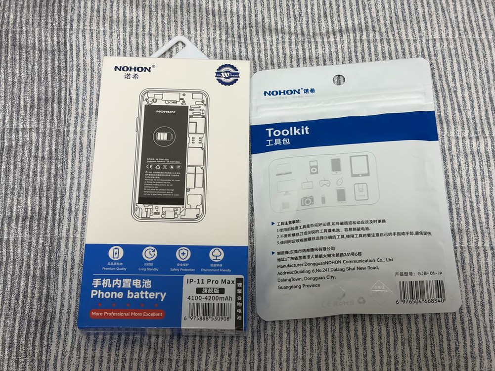 NOHON 아이폰11 프로맥스 배터리 팝니다. - 용량: 4200mAh - 배터리 교체 툴킷 포함 알리에서 구매한 미사용 새상품입니다.