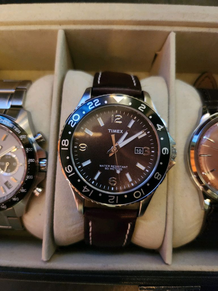 개인정보(거래정보)를 주고받는 행위는 사기에 노출될 수 있으므로 즉시 중고나라로 신고해 주세요타이맥스 GMT시계입니다 - 50M 방수 기능이 있습니다 - 스테인리스 스틸 백으로 제작되었습니다 - 검정 나토 / 블루 가죽 / 갈색 가죽 (선택)