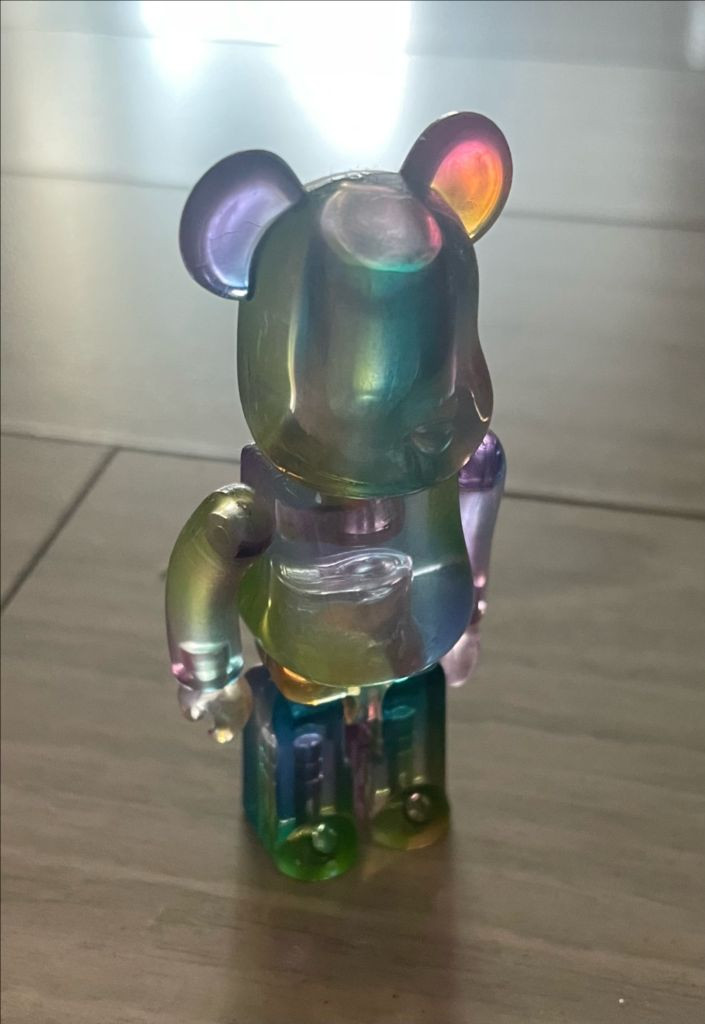 클리어한 메탈 소재의 홀로그램 효과가 있는 미니피규어예요. 빛에 따라 무지개빛으로 반짝이는 특별한 디자인이라 수집가들에게 인기가 많은 아이템입니다.