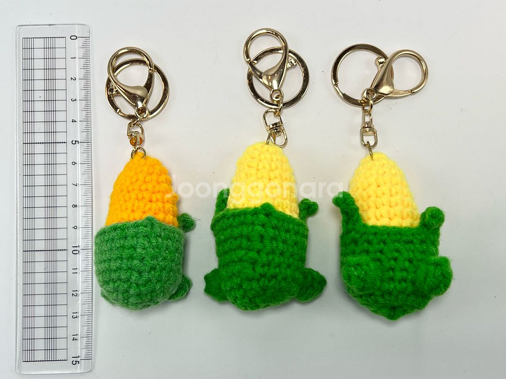 옥수수 키링 열쇠고리 자동차키 키홀더 직접 손뜨개질 했어요 1개 15,000 원 20개 있어요 일반 택배비 4,000 원 반값 택배비 2,000 원