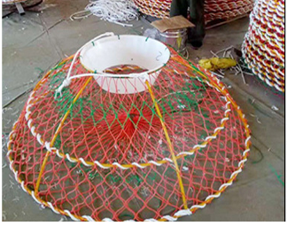 대게통발형으로 나온 제품입니다. 지름 120cm / 구멍사이즈 4cm x4cm