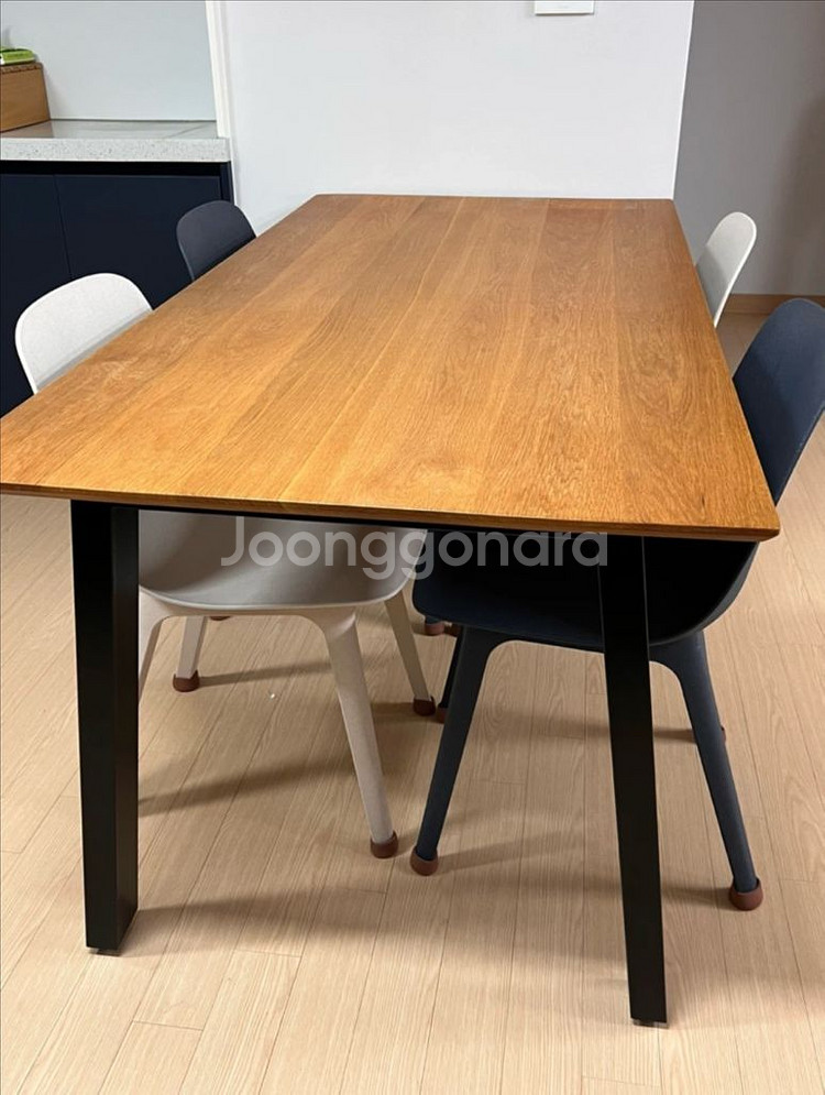 최고급 오크 원목 식탁과 IKEA 오드게르 의자 세트입니다. 식탁은 4~6인용 사이즈(1600x800)입니다. 원목 상판과 하부 철재 분리 가능합니다. 의자는 베이지 2개, 남색 2개, 빨간색 1개 있습니다. IKEA 오드게르 의자는 재활용 플라스틱과 목재 섬유로 만들어졌으며, 둥근 등받이와 넓은 좌판 덕분에 편안하게 앉을 수 있습니다. 식탁과 의자 함께 판매하기를 원하지만 개별 판매도 가능합니다. 식탁(20만) / 의자(개당 3만5천, 총 14만)- 의자는 5개 세트로 판매합니다.) 직접 가져가셔야 합니다. 무게가 있어 차에 싣는 것은 도와드릴 수 있습니다. 원목식탁 판매처 : https://m.brand.naver.com/yellowlight/products/4523254438