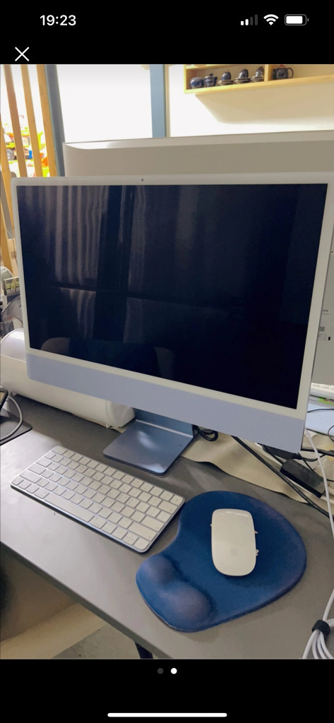 애플 아이맥 24인치 M1 블루 - 24인치 Retina 디스플레이 - M1 칩 - 8GB RAM, 256GB SSD - Magic Keyboard, Magic Mouse 포함 인테리어 사무실에서 사용하려고 두대를 구매했는데 캐드랑 호환이 잘 안맞아서 구매후 거의 사용하지 못했습니다. 포토샵 프로그램이랑 MS 모두 깔려있습니다. 박스랑 구성품 모두 있습니다~ 저렴한 비용으로 득템하세요~