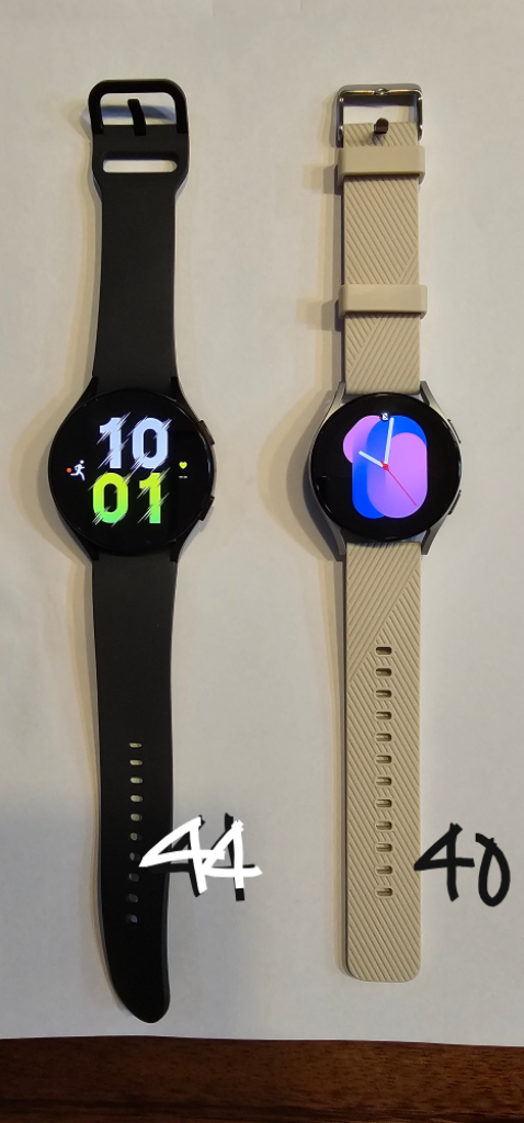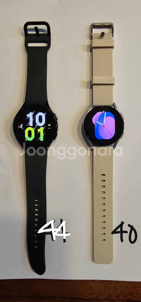 - 제품명 : 갤럭시 워치5 44mm , 40mm 각 1대씩 - 모델명 : 44mm (SM-R910) 40mm (SM-R900) - 구매시기 : 2022년 함께구매 - 색상 : 44mm 블랙 40mm 실버 - 사용이력 : 44mm, 40mm 둘다 구매후 3개월미만 사용하다 폰 변경으로 인해 사용안하다가 44mm만 최근 1년 러닝용으로만 사용 (운동 전후 미착용) - 특징 : 40mm 기스없음 오래된 보관으로 좌측상단 얼룩 약간 44mm 액정기스 없음 바디에 약간 찍힘있음 44mm 정품스트랩 40mm 사제스트랩 (정품없음) - 구성품 : 정품 충전 케이블 2개중 1개 (1개는 분실함) - 판매옵션 : 44mm + 40mm + 케이블 1개 일괄구매시 13만원 44mm + 케이블1개 단독구매시 9만원 40mm + 케이블1개 단독구매시 6만원 (케이블 없이 바디만 구매시 만원 차감) - 직거래 우선 , 택배나 반값시 착불 - 직거래 협의하에 직접 전달차 이동 가능