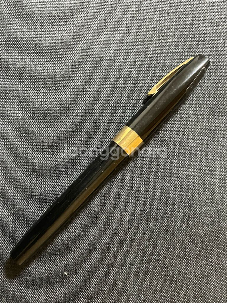 모델명 : 쉐퍼 만년필 550 트라이엄프 임페리얼 블랙 GT 14K 골드 F닙 1970년대 미국 생산 모델입니다. 닙은 14K 골드 F닙으로 부드럽게 잘 써집니다. 카트리지 / 컨버터 방식이고, 컨버터 포함입니다. 세월에 비해 상태가 좋은 편입니다(사진 참조). 모델명과 닙 굵기가 적힌 스티커가 캡 뒷면에 붙어 있는데 글자는 지워진 상태입니다. 펜 단품이고 택배비는 포함한 가격입니다.