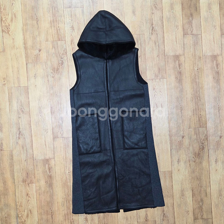 쏘울(SO.WOOL) 터키 무스탕 리버시블 후드 롱베스트 55-66 /거의새거 반품 52 기장 110 블랙과 그레이칼라 배색의 터키 무스탕 리버시블 후드 롱베스트입니다 앞판과 후드는 리얼 램스킨, 앞판안감과 후드안감은 양모 뒷판은 라쿤울 소재의 리버시블 후드베스트입니다 포켓,뒷트임 있고 59만원대 제품이며 거의 착용감없어 새거나 마찬가지입니다 가격은 95000원입니다 반품불가/착불