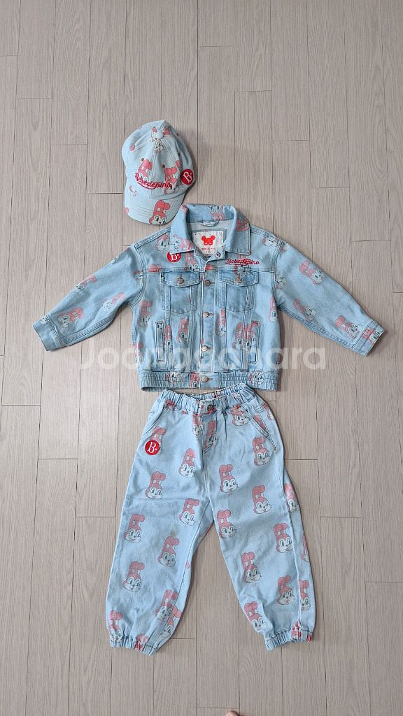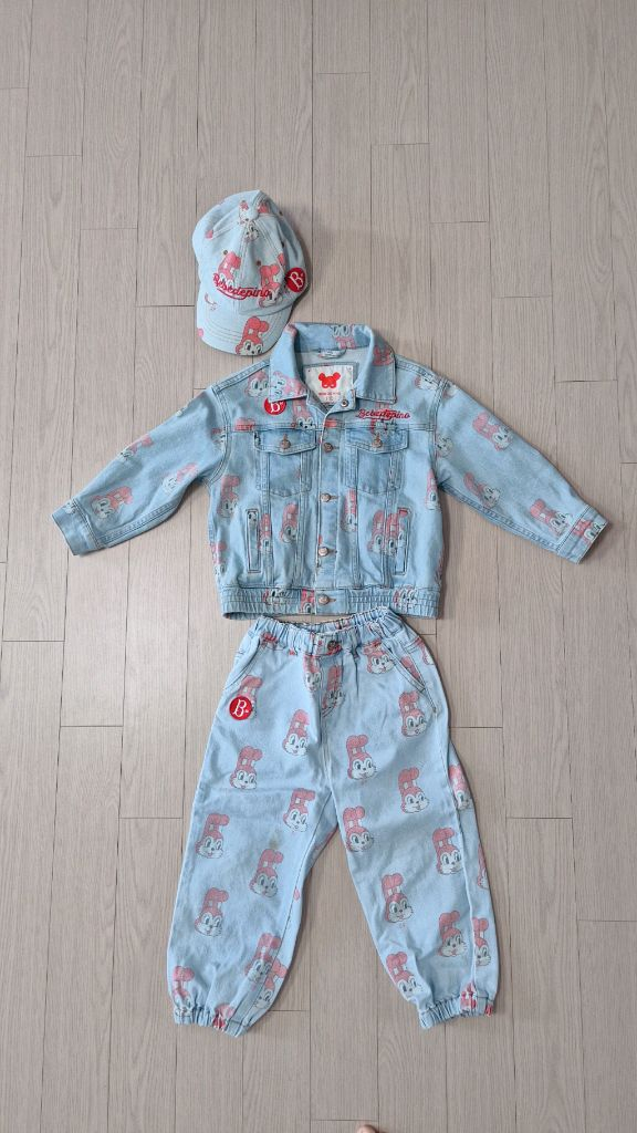 110사이즈 데님자켓 + 데님팬츠 + 캡모자 풀세트 입니다. 정가 17만원 전후 구매했었네요. 한철 입혔었고 모자는 한두번 착용했습니다. 자켓 카라부분 안쪽과 팬츠 무릎부분 얼룩 사진 고지합니다. 자켓은 입히면 안보이는 부분이고 바지는 세탁하면 지워질 것 같이 보이긴 하는데 해보진 않았어요. 그대로 보관한거라. gs반택포 49천 일반택포 51천 환불불가