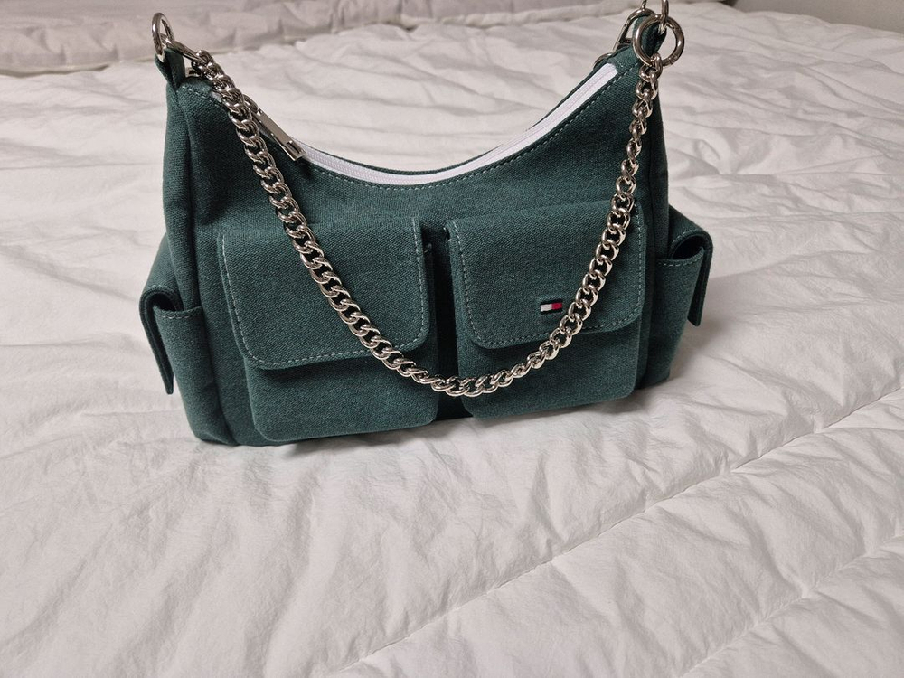인스타 켈리즈에서 업사이클링 백 구매하였습니다 타미 크로플백입니다 두어번 들었어요~ 청록색이구요. 체인 달려있고 숄더/크로스 가능합니다 구매시 13정도 주었습니다 택포 가격입니다
