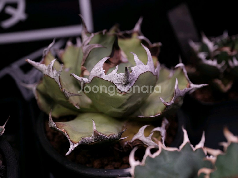 하얀 가시 지분 두터운 하이퀄리티 아가베 티타노타 드워프 노멀입니다. 모주에서 떼어내어 순화 완료된 개체입니다. 자체제작 네임택 제공됩니다. 택배시 +5,000원 추가됩니다(우체국 사용) 1번 사진 - 모주 2번 사진 - 분양개체