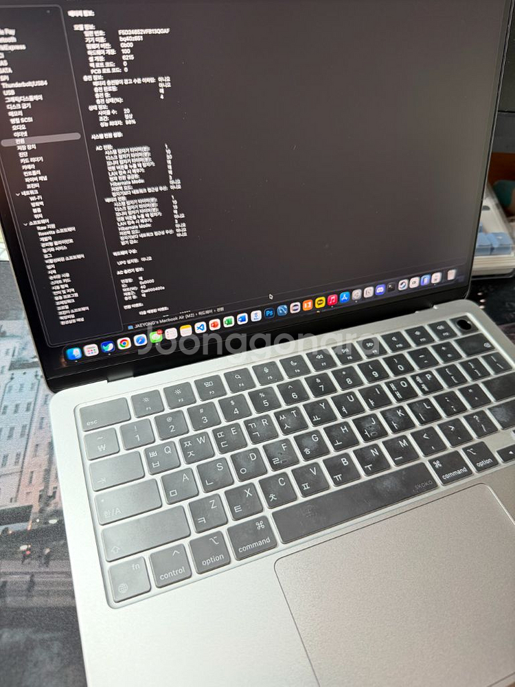 MacBook Air M2 모델입니다. 사양은 기본형 (8GB / 256GB)이고, 보증기간은 종료되었습니다. 배터리는 첫번째 사진 보시는 것처럼 100%, 싸이클도 20회밖에 안되는 민트급 제품입니다. 충전기하고 맥북 보유중이고, 추가로 스코코 키스킨과 저반사 필름이 스크린에 부착되어 있어 편하게 사용하실 수 있습니다. 저반사 필름을 붙히고 안붙히고 차이가 크더라구요 조명이 많은 곳에서 반사 때문에 불편했는데 붙히고 나서 작업하기가 훨씬 편했습니다. 가격을 저렴하게 책정한 이유는 세번째 사진에서 보시다시피 조그맣게 콕 자국이 있습니다. 판매하려고 자세히 보니 보여서 기재합니다. 궁금하신 점 있으시면 문의주세요-!