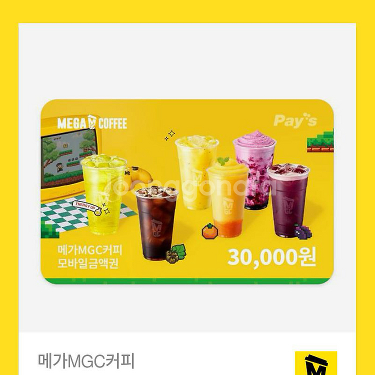 메가MGC커피에서 사용 가능한 3만원 모바일 금액권이에요. 다양한 음료와 디저트를 즐기실 수 있어요!
