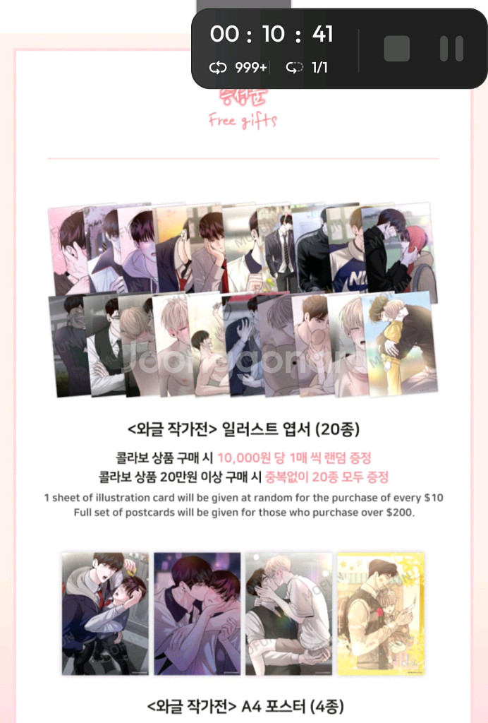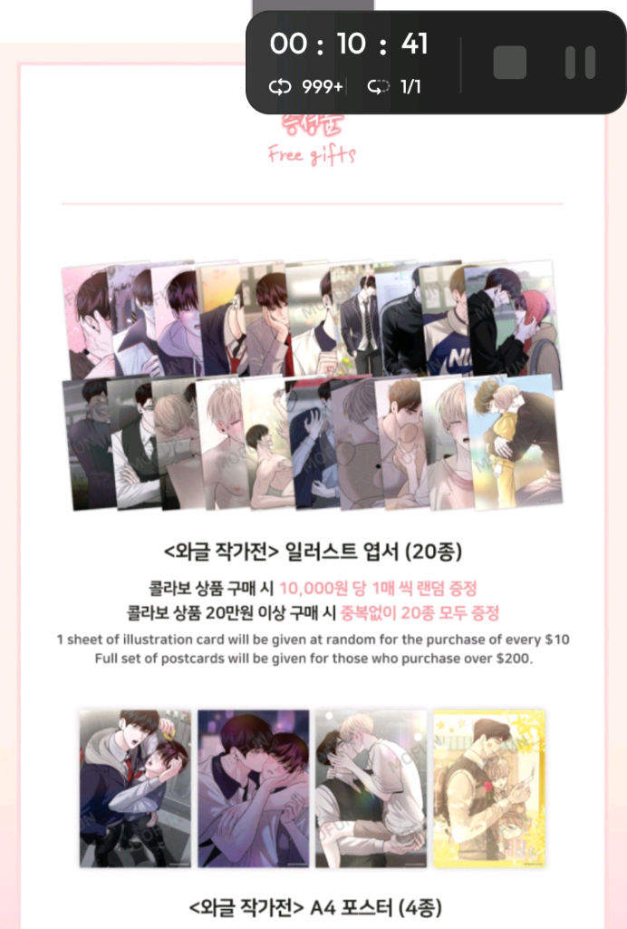 와글작가전 월요일의구원자 1만특전엽서 풀셋,5만특전 포스터 풀셋