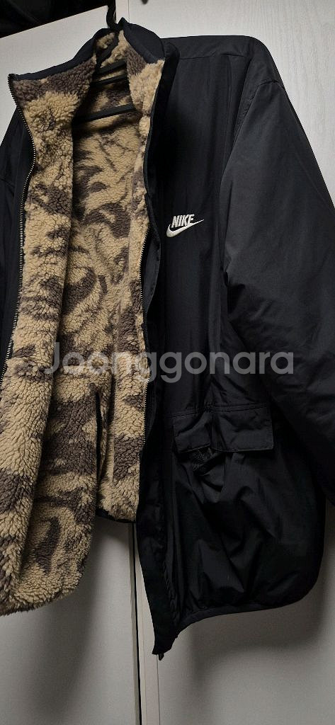 나이키 로고가 있는 블랙 컬러 후드 집업이에요 리버시블 양면 점퍼입니다 .양털 안감으로 따뜻하고 편안한 착용감을 제공합니다 상태좋고 따뜻 점퍼 반값택배 가능~ 사이즈 105 정도