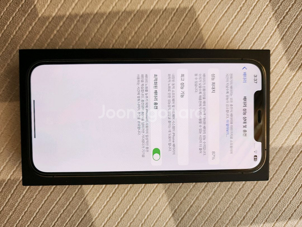 아이폰 12 프로맥스 그래파이트 모델 판매합니다. 소중히 사용하던 폰이라 전반적인 상태 아주 양호하며, 기기 변경으로 인해 내놓게 되었습니다. 사설수리이력 없습니다 액정도 처음 구매시 장착되어 있던거고 수리 한적 없어요 ✅ 상품 상세 정보 모델명: 아이폰 12 프로 맥스 (iPhone 12 Pro Max) 용량: 128GB (사진으로 확인 가능하듯 넉넉합니다) 배터리 효율: 87% (성능 최고치 확인 완료, 실사용 시 충분히 오래 갑니다) 상태: 구매 직후부터 케이스와 강화유리를 사용하여 큰 찍힘이나 파손 없이 깨끗합니다. (사진 참고) 🎁 풍성한 추가 구성 (모두 드립니다!) 단순히 폰만 드리는 게 아니라 바로 사용하실 수 있게 다 챙겨드려요. 정품 박스 포함 풀패키지 충전기 2개 (집/사무실에서 넉넉하게 사용하세요) 새 액정 보호 강화유리 1매 (기존 것 떼고 새로 붙이시면 새 폰 같습니다) 케이스 2종 (사용감은 있으나 원하시면 함께 드립니다.) 가격제안은 불가하며 이가격에 구매하실분만 연락 주세요