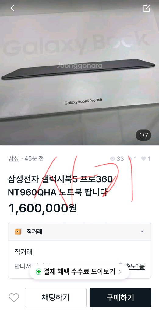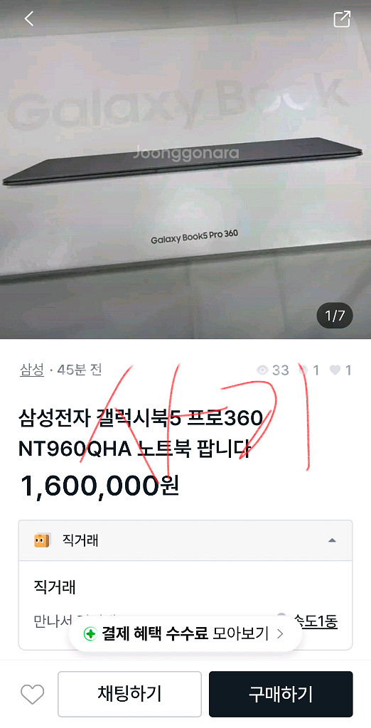 개인정보(거래정보)를 주고받는 행위는 사기에 노출될 수 있으므로 즉시 중고나라로 신고해 주세요모델명삼성전자 갤럭시북5 프로360 NT960QHA-KC71S컬러실버사기조심하세요 더치트에 안나옵니다. 네이버에 검색하세요 카페로