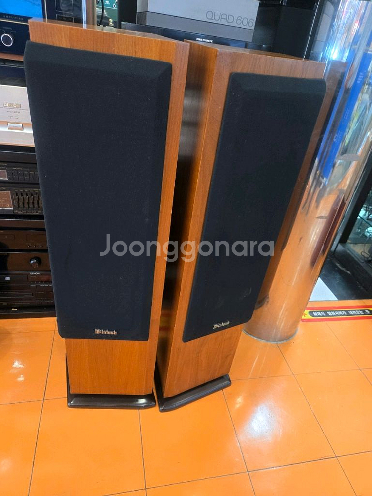 매킨토시 SL-4 스피커는 1990년대 중반에 출시된 2웨이 플로어 스탠딩 스피커 시스템입니다. 슬림한 디자인과 뛰어난 빌드 품질로 유명하며, McIntosh 앰프와 매칭 시 웅장하고 선명한 사운드를 제공하는 것으로 평가됩니다. 주요 사양 McIntosh SL-4 스피커의 주요 기술 사양은 다음과 같습니다: 특징 세부 정보 시스템 유형 2웨이 플로어 스탠딩, 베이스 리플렉스 드라이버 구성 6.5인치 우퍼 2개, 1인치 알루미늄 돔 트위터 1개 공칭 임피던스 4옴 크로스오버 주파수 2400Hz 출력 음압 레벨 (감도) 84dB (1W/1m 기준, 87dB @ 2.83v) 권장 파워 핸들링 최대 150W 크기 (W x H x D) 26 x 104.5 x 27 cm 무게 개당 약 19.5kg (43 lbs) 마감 월넛 또는 블랙 애쉬 성능 및 평가 사운드 품질: 사용자 리뷰에 따르면, SL-4 스피커는 가격 대비 매우 크고 선명한 사운드를 제공하며, McIntosh 특유의 웅장하고 선명한 사운드 스테이지를 구현합니다. 일부 전문가들은 McIntosh 스피커가 앰프만큼의 명성을 얻지는 못했지만, 여전히 좋은 소리를 내며 특히 적절한 파워 앰프와 함께 사용할 때 그 진가를 발휘한다고 언급합니다. 디자인 및 빌드: McIntosh 제품답게 뛰어난 빌드 품질을 자랑하며, 클래식하고 시대를 초월한 디자인이 특징입니다.