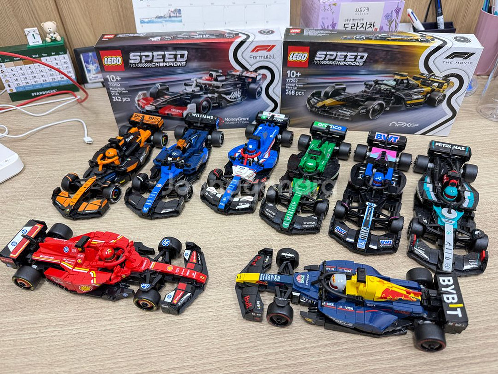 레고F1 스피드챔피언 세트입니다 최신 발매한 77252 에이팩스버전까지 다 포함이구요 킥자우버는 너무 구하기 힘들고 고기여서 제외하고 10종입니다 전제품 다 모아서 전시하려다가 포기하고 팔아요.. 일괄판매만 하고 일있을때 충주, 청주를 가기때문에 일정 맞아야 거래가능해요 저는 박스에 보관중이나 액자같은거 사서 걸어두시면 예쁠거같네요 심지어 두개는 미개봉이라 조립도 해보시면 좋을것같아 뜯지도 않고 팝니다 네고문의는 답변드리지 않겠습니다 다시한번 일괄판매라는 점 알아주시구요 택배원하시면 보내드리나 파손면책 동의하에 가능합니다