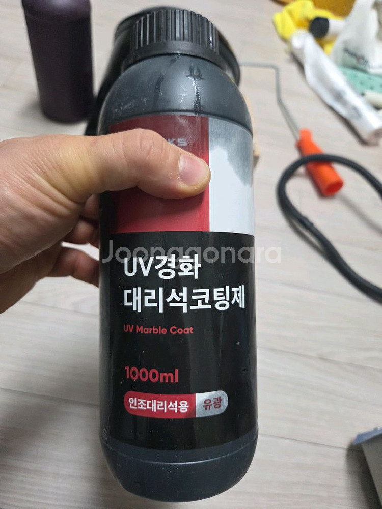 UV 인조대리석 유광코팅제 1000ml입니다 500ml정도 남았고 스타락스제품입니다. UV코팅제 중광은 조금 남았는데 그냥드릴께요 uv차단보호면 하고 사진에있는 롤러도 그냥드려요 8만원 칸스톤 코팅제5만원 부속품같이드려요
