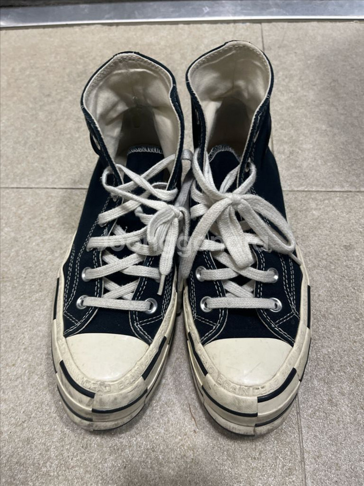 컨버스 브레인 데드 콜라보 척 70 하이 블랙 색상입니다 사이즈는 245mm입니다 밑창에 BRAIN DEAD 레터링이 있는 독특한 디자인입니다 컨버스 척 70은 뛰어난 쿠셔닝과 지지력을 제공하여 편안한 착화감을 자랑합니다 크림에서 구매했는데 잘 안신어서 판매합니다 사용감 좀 있어서 싸게 내놓아요 반택 +2700