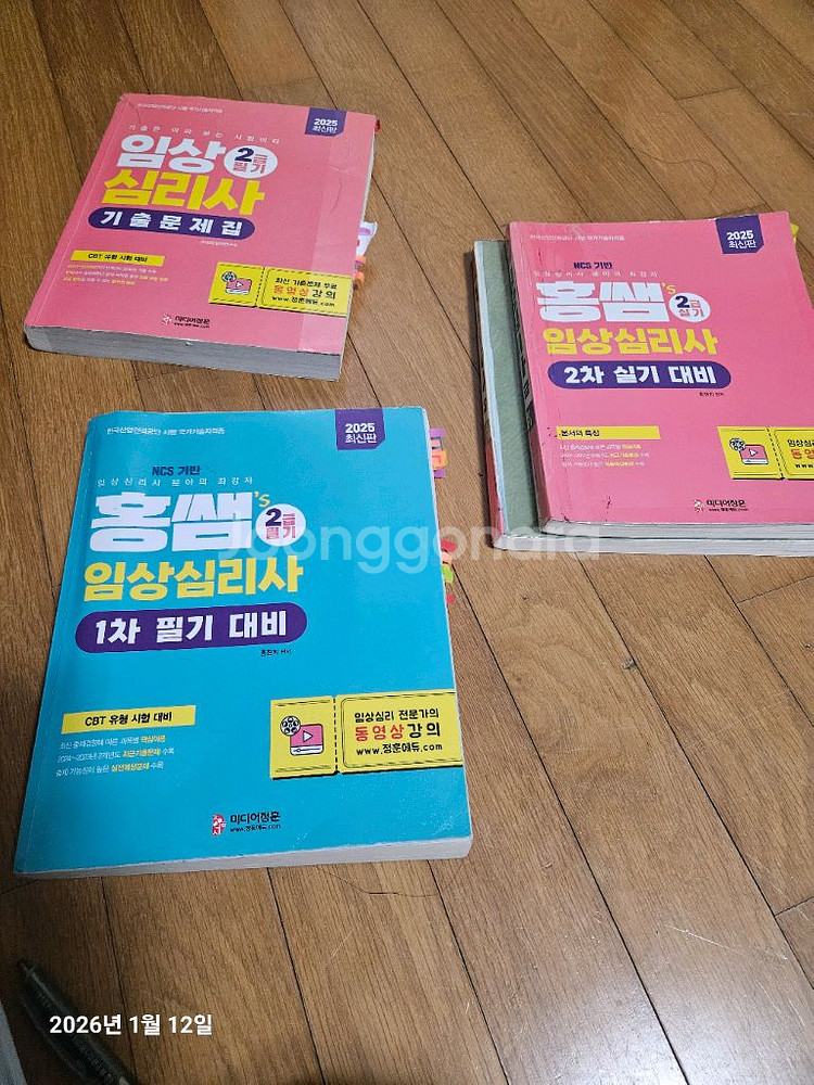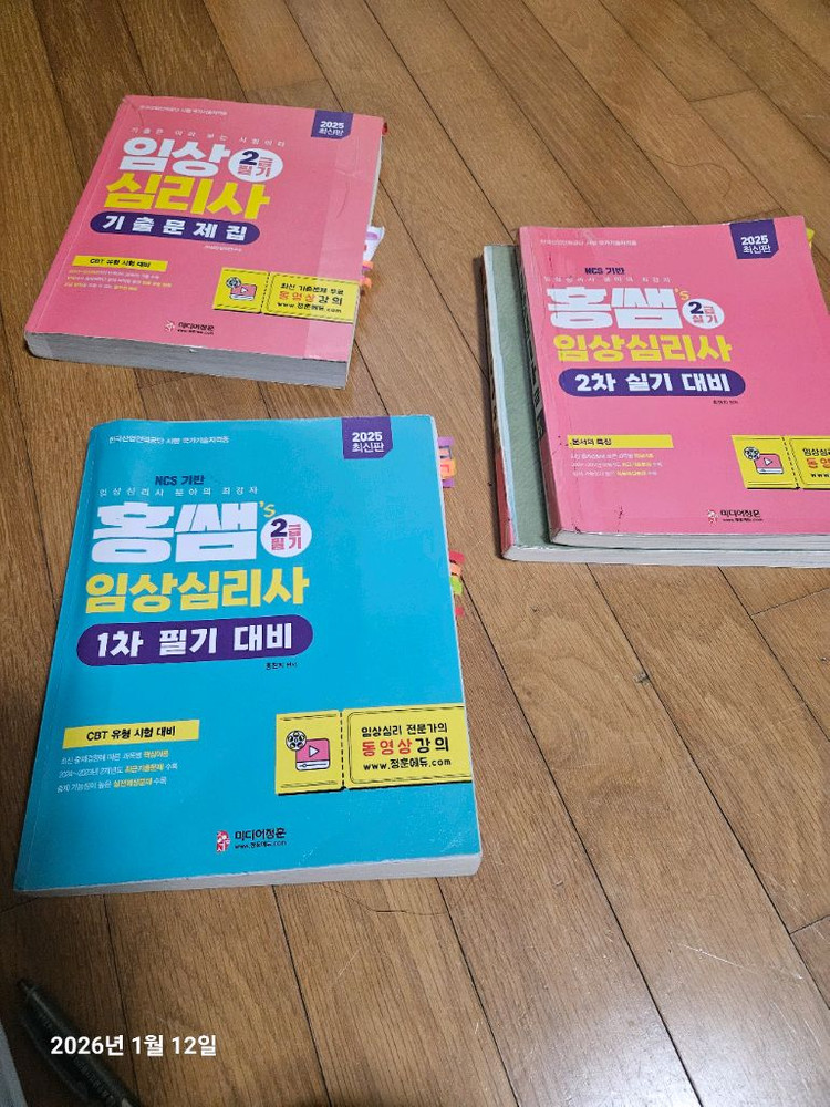 임상심리사 필기 실기시험 대비용 교재들이에요. 여러 권으로 구성되어 있고, 일부 책은 필기가 되어있어서 공부하기 좋을 것 같아요. 임상심리사 시험 준비하시는 분께 도움될 거예요! 교재세트 구입시 정훈에듀 강의가 26년 11월까지 남아있어서 아이디 알려드립니다.. 010-2239-1632
