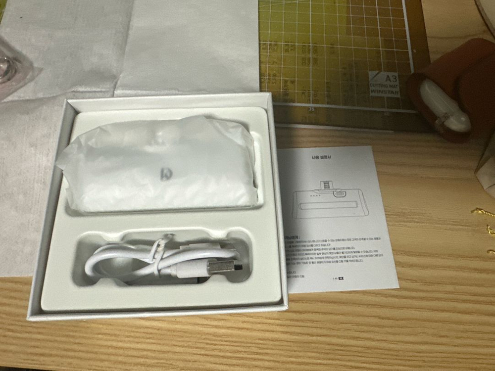 새상품 보조배터리 풀박스입니다. 업체가 아닌 개인이기에, 하나하나 뜯어보고 확인할수 없습니다. 구매후 환불은 사양합니다. - C타입 - 용량: 5000mAh - 무게: 90g 작고 가벼워서 휴대하기 좋습니다. 일반택배, GS반값택배도 가능합니다. (택배비는 별도) 개당3,000원. 총15개 있습니다.