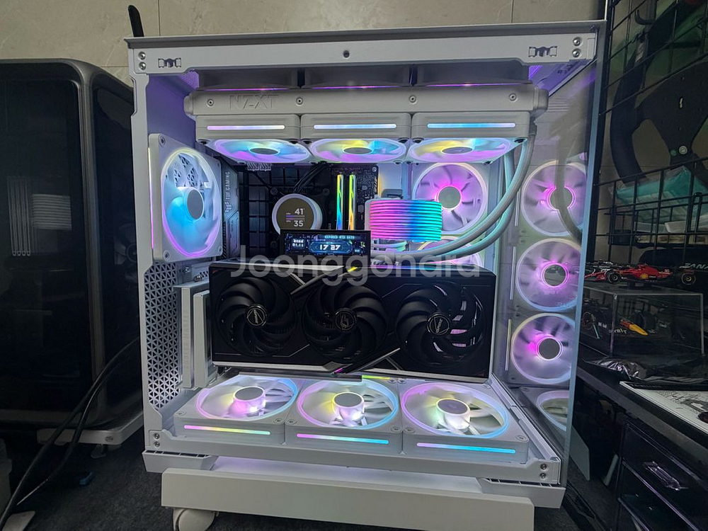 1. 세컨 컴으로 활용하였으며 집에서 유투브 시청 및 간단한 작업용도로 활용한 사용빈도가 적은 pc입니다. - 구매 시기: 2024년 3월 ~ 2025년 5월 (전 부품 무상 AS 넉넉함) - 사용 용도: 비흡연/반려동물 없는 환경에서 깔끔하게 동영상 시청 및 간단한 작업용으로만 사용 - 상태: 주기적으로 먼지 제거 관리를 하여 신품급 컨디션 유지 중입니다. 2. 상세 사양 (전 부품 정품 박스 및 영수증 보유) - CPU: 인텔 i7-14700KF (24년 3월 구매) - M/B: ASUS TUF Gaming Z790-PLUS WIFI (24년 3월 구매) - VGA: COLORFUL RTX 5070 VULCAN OC (25년 5월 구매후 교체, LCD 정상) - RAM: G.SKILL DDR5-6400 CL32 TRIDENT Z5 RGB WHITE 32G (16Gx2) (24년 3월 구매) - SSD: SK하이닉스 P31 Gold M.2 NVMe 1TB (24년 3월 구매) - 쿨러: NZXT KRAKEN 360 RGB WHITE (24년 3월 구매) - 파워: 슈퍼플라워 SF-1300F14XG LEADEX VII GOLD ATX 3.1 (화이트) (25년 3월 구매후 교체) - 케이스: Antec C8 MESH (화이트) (25년 5월 구매후 교체) - 팬: 커세어 iCUE LINK LX120/140 RGB 화이트 풀세트 (총 10개) (25년 3월 구매후 교체) - 기타: 존스보 스트리머 케이블, 쿨러마스터 수직 라이저 키트 포함, 윈도우 11프로 정품 설치 (oem) 3. 판매 가격 및 거래 방식 일괄 판매가: 270만원 거래 방식: 제품 특성상 인천 남동구 구월동, 관교동 직거래 합니다. 참고: 고가 제품인 만큼 직접 구동 테스트 확인 후 인계해 드립니다. 4. 특이사항 단순히 성능만 챙긴 PC가 아니라, 커세어 iCUE LX 팬과 NZXT 샌드위치 수냉구성, Vulcan VGA까지 감성 위주로 빌드한 시스템입니다. 개별 부품 가격만 합쳐도 상당하며, 모든 부품 보증 기간이 매우 많이 남아있어 중고 거래의 불안함 없이 사용하실 수 있습니다. 현 시점 RAM, SSD 등 가격이 미쳐 날뛰는 상황에 합리적인 구매방법이 아닐까 싶네요. 전 부품 정품박스 보관중입니다. 일괄판매가 안될시 개별판매 예정입니다.
