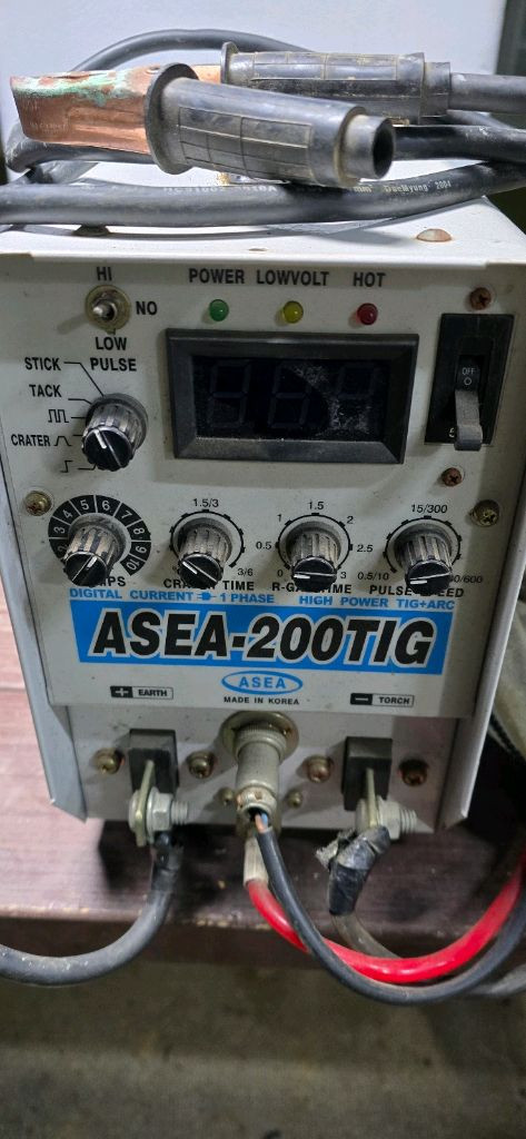 아세아 알곤용접기 ASEA-200TIG - 본체 +알곤용접선 +게이지 +알곤가스통 (가스량 90%) - 220v 단상용
