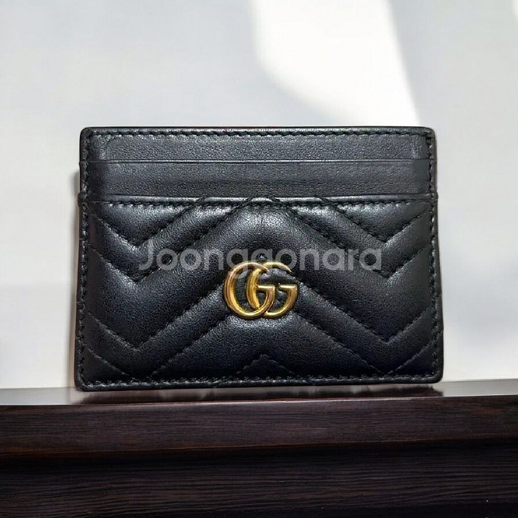 구찌 정품 마몽 마몬트 마틀라세 가죽카드케이스 카드지갑 블랙 팝니다 구찌 정품 마몽 마몬트 마틀라세 가죽 카드케이스 카드지갑 블랙은 구찌의 시그니처 GG 마몽 컬렉션에서 나온 아이템으로, 블랙 마틀라세 쉐브론 레더에 중앙 골드 톤 더블 G 로고가 돋보이는 세련된 카드지갑입니다. 상태 좋아요 전면과 후면 모두 퀼팅 패턴이 일관되게 들어가 있어 어떤 각도에서 보셔도 균일한 고급스러움을 느끼실 수 있으며, 뒷면에는 GG 스티치 디테일이 은은하게 새겨져 있습니다. 내부는 총 5개의 카드 슬롯과 오픈 포켓, 지퍼 포켓 1개로 구성되어 카드뿐만 아니라 소액 현금이나 영수증도 편리하게 관리하실 수 있습니다. 슬림한 사이즈로 포켓이나 미니백에 부담 없이 들어가며, 앤틱 골드 톤 하드웨어가 전체적으로 조화를 이룹니다