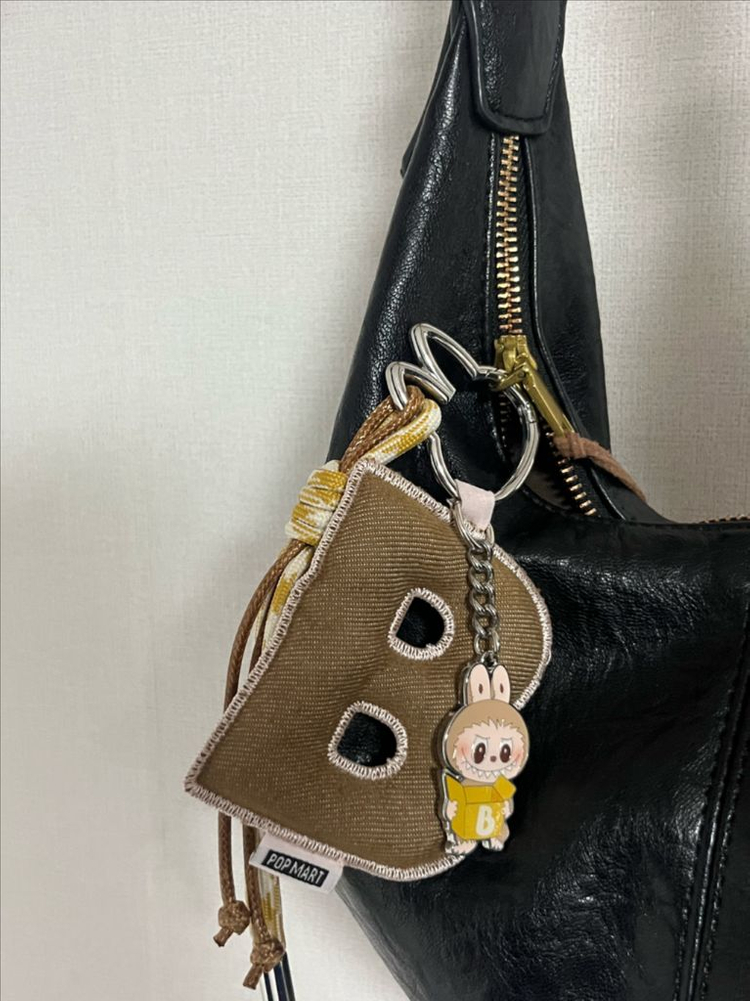 팝마트 라부부 이니셜 키링입니다! 선물 받았는데 한 번도 사용하지 않은 새상품입니다 :) 예시로 가방에 달아봤는데 귀여워요!